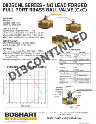 0825NL & 0825CNL SERIES REPLACEMENT HANDLES – DISCONTINUEDBy Cody Gagnon / September 16, 2025 File Type: pdf Categories: Ball Valves - Brass, Section 02