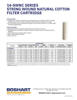 14-SWNC SERIESBy Cody Gagnon / September 22, 2025 File Type: pdf Categories: Section 05, Sediment Cartridges Tags: 14-SWNC1-05, 14-SWNC1-10, 14-SWNC1-20, 14-SWNC1-25, 14-SWNC1-50, 14-SWNC2-05, 14-SWNC2-10, 14-SWNC2-20