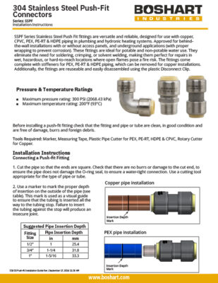 S.S PUSH-FIT FITTINGS – INSTALLATION GUIDEBy Cody Gagnon / September 25, 2025 File Type: pdf Categories: Push Fittings, Section 03 Tags: SSPF, Stainless, Steel
