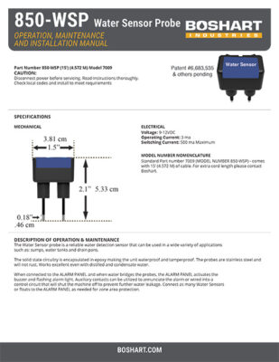850-WSP WATER SENSOR PROBE – INSTALLATION SHEETBy Cody Gagnon / September 12, 2025 File Type: pdf Categories: Liquid Level Alarms, Section 13