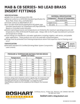MAB & CB SERIES – NO LEAD BRASS INSERT FITTINGS