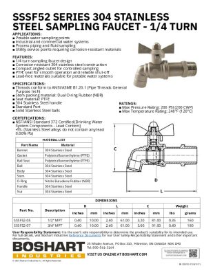 SSSF52 SERIES – 304 Stainless Steel Sampling FaucetBy Laura DeWeerd / March 26, 2026 File Type: pdf Categories: Sampling Faucets, Section 02 Tags: SSSF52-05, SSSF52-07