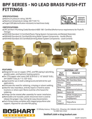 SÉRIE BPF – RACCORDS À ASSEMBLAGE PAR PRESSION EN LAITON SANS PLOMB