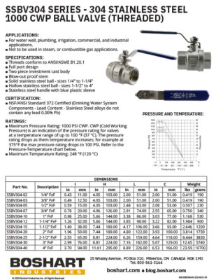 SÉRIE SSBV304Par Cody Gagnon / 16 septembre 2025 Type de fichier : pdf Catégories : Robinets à boisseau sphérique - Acier inoxydable, Section 02