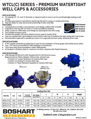 SÉRIE WTCL(C)Par Cody Gagnon / 24 septembre 2025 Type de fichier : pdf Catégories : Section 11, Well Caps - Watertight & Vermin-Proof Mots clés: WTCL-C10, WTCL-C12, WTCL-C14, WTCL-CA40-2010, WTCL-CS40-312-4, WTCL-CS40-437-4, WTCL-CS40-563-4, WTCL-CS40-700-4, WTCL-VC-1014